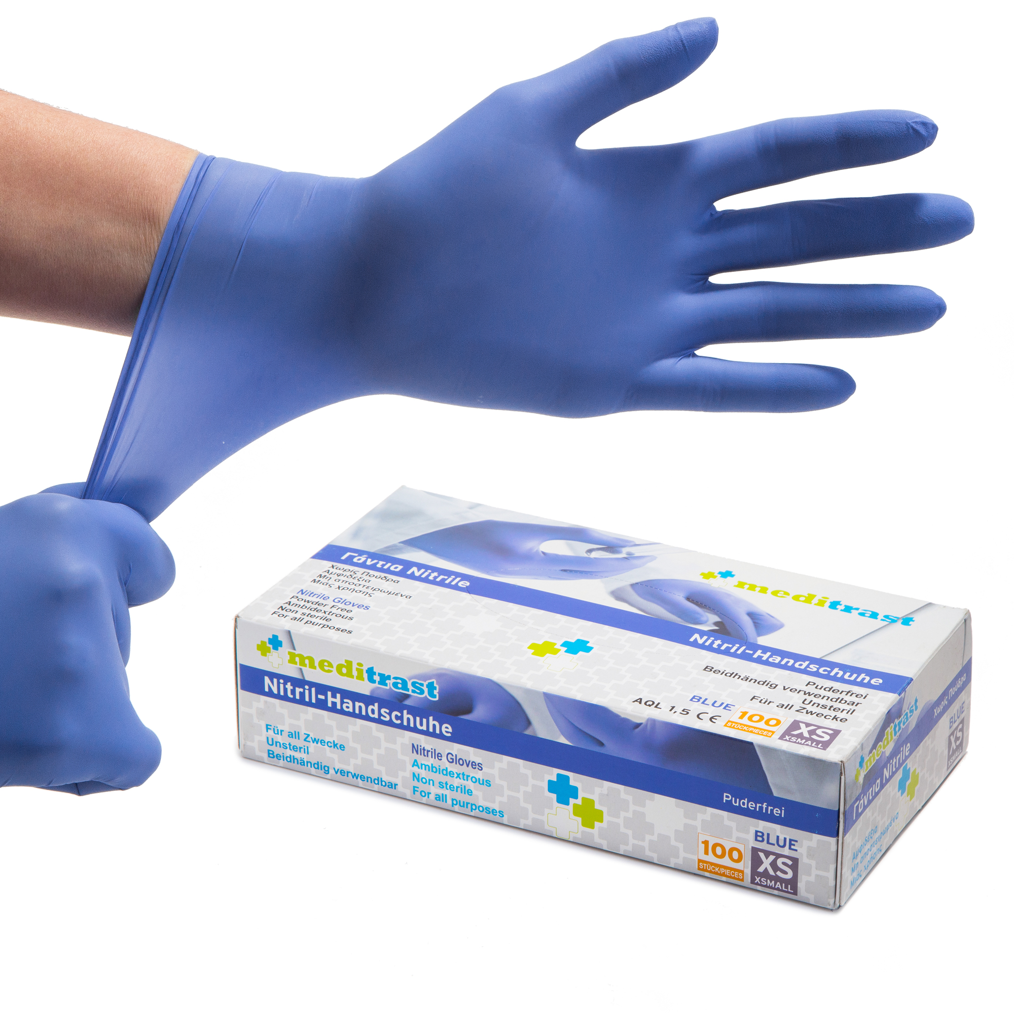 Γάντια Νιτριλίου Χωρίς Πούδρα Μπλε 100τμχ.
