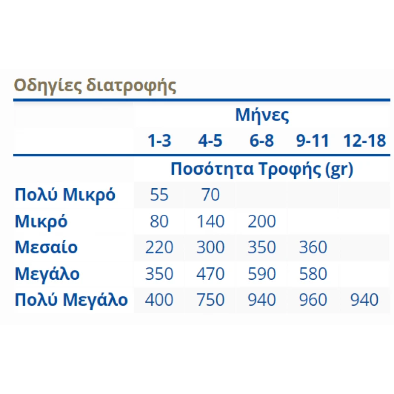 Σκυλοτροφή πλούσια σε πρωτεΐνες, κατάλληλη για αναπτυσσόμενους σκύλους ανεξαρτήτου μεγέθους.
