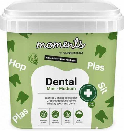 Οι λιχουδιές Moments Functional Dental Mini-Medium 500gr είναι ειδικά σχεδιασμένες για σκύλους μικρόσωμων και μεσαίων φυλών, προάγοντας την καλή στοματική υγιεινή και την υγεία των δοντιών τους. Η ειδική τους υφή και το σχήμα τους βοηθούν στην απομάκρυνση της οδοντικής πλάκας και της πέτρας, ενώ παράλληλα προσφέρουν φρέσκια αναπνοή.